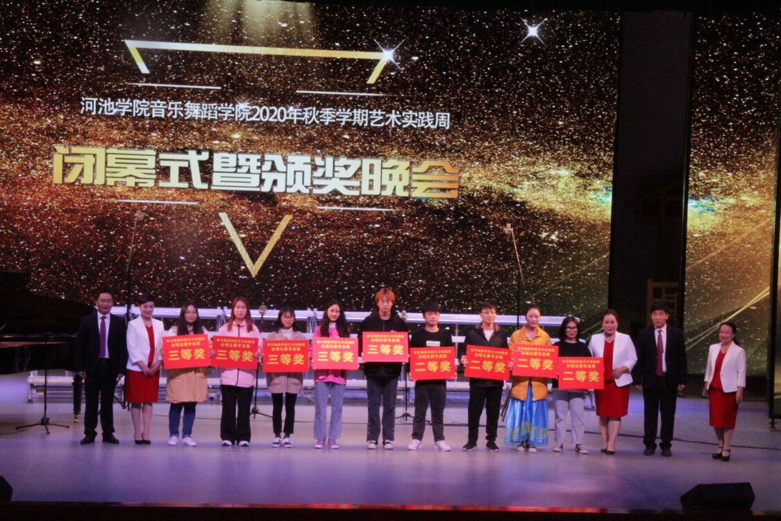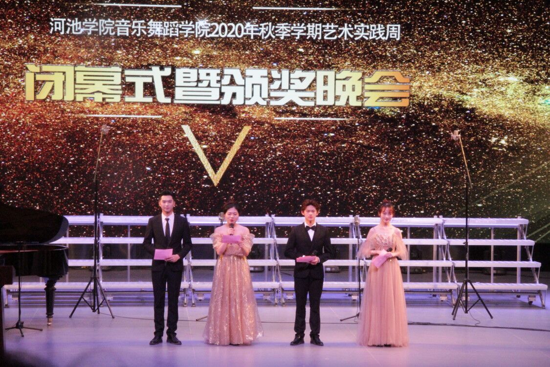2020年11月27日晚,河池学院好博官网2020年秋季学期艺术实践周闭幕式暨颁奖晚会在艺术楼表演厅举行。