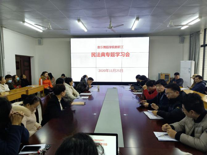 为深入推进《中华人民共和国民法典》的贯彻落实,努力营造尊法、学法、守法、用法的浓厚氛围,11月25日下午,好博官网在艺术楼402会议室组织召开《中华人民共和国民法典》专题学习会。好博官网全体教职工参加会议,会议由党委书记魏菱主持。