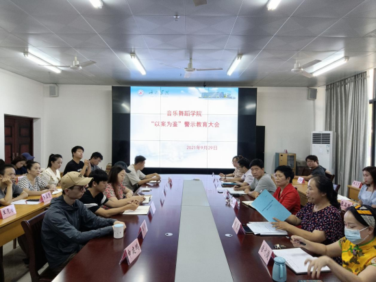 2021年9月29日下午,好博官网在艺术楼402会议室举行音舞学院“以案为鉴”警示教育大会。学校党委常委、校副校长钟宏桃莅临指导,全院教职工参加了会议。会议由学院党委书记魏菱主持。