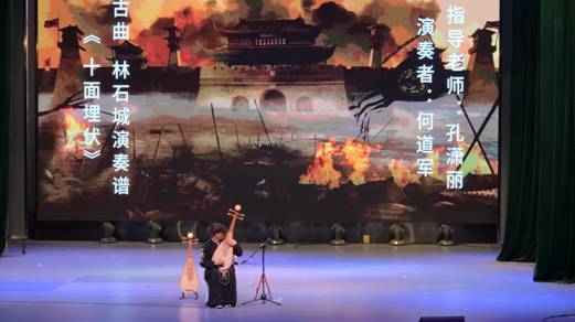 器乐组的琵琶曲《十面埋伏》,用音乐的形式描绘了激烈的战争场面,结尾用了凤点头指法来代表马蹄声,给观众带来的是一幅生动感人的古战场音画。