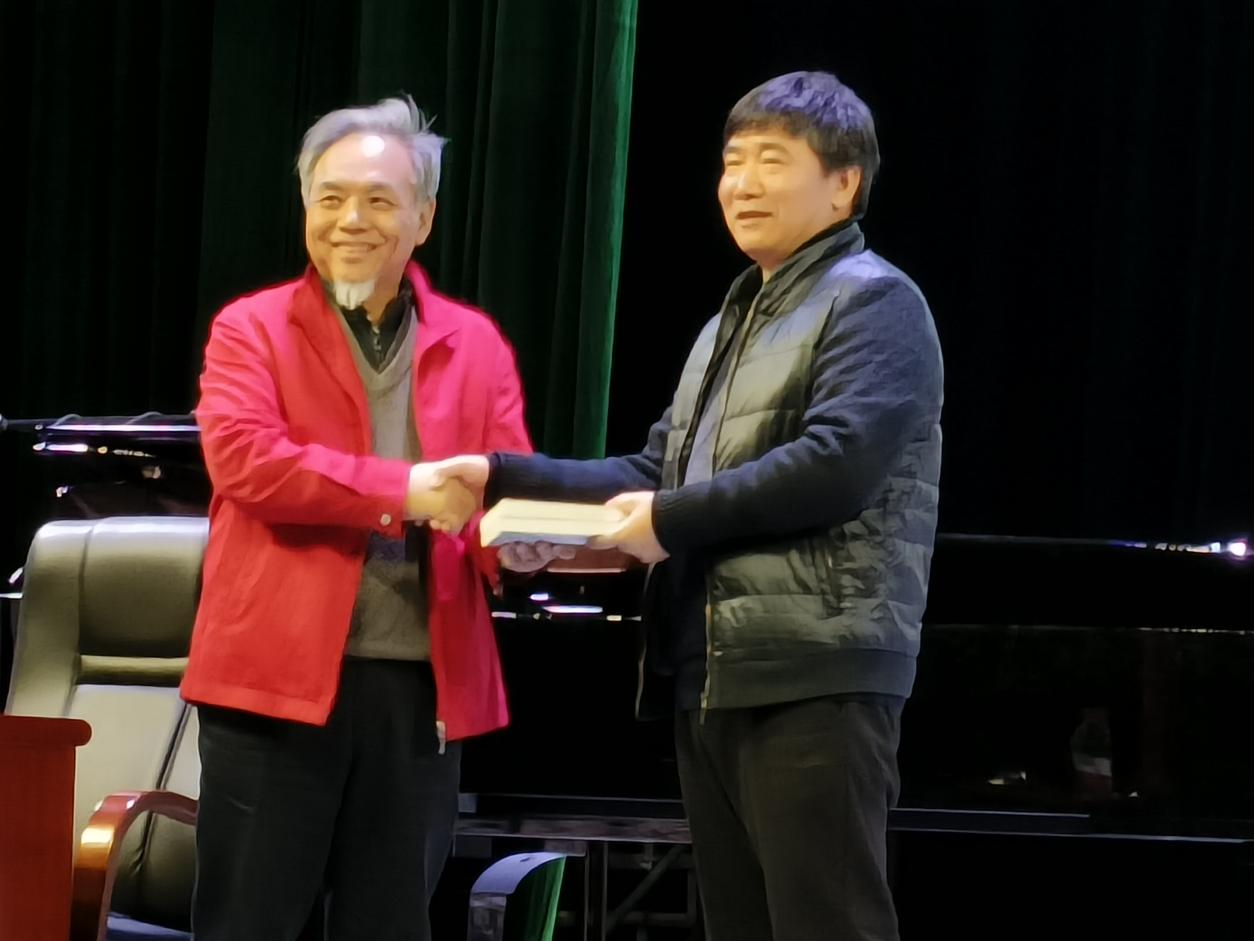 在互动环节,周教授结合自己丰富的教学、排练、演出经验,毫无保留地与到场各位老师、同学进行了交流、分享,并向好博官网赠送了合唱指挥教材。