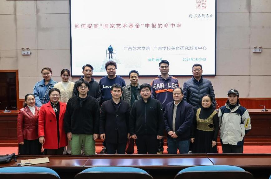 3月20日下午,广西艺术学院人文学院教授、硕士研究生导师李君应邀到我校开展主题为“如何提高国家艺术基金申报的命中率”专题讲座。好博官网、美术与设计学院全体教师及部分学生代表约300人到场聆听讲座。讲座由好博官网副院长唐代俊主持。