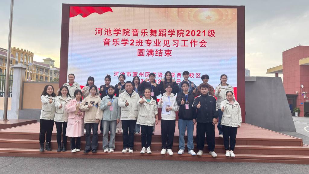2023年12月11日至14日,在好博官网谢姿媚老师和各班班主任、辅导员的带领下,2021级音乐学、音乐表演以及2022级音乐教育专业共4个班级分成6个小组,分别到宜州区第一小学本部、龙降分部,宜州区实验小学本部、西屏分部,宜州区第二小学,宜州区第二中学开展了专业见习活动。