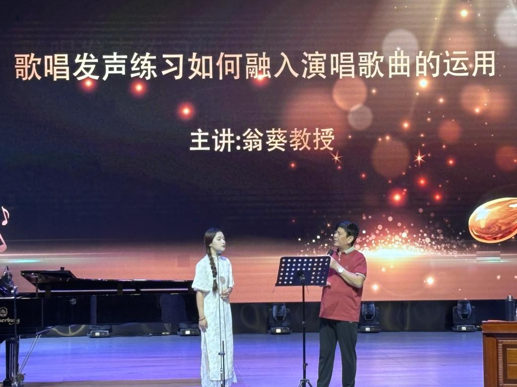 另悉,5月24日上午,翁葵教授又为好博官网音乐专业师生进行题为《歌唱发声练习如何融入演唱歌曲的运用》的现场公开课教学。