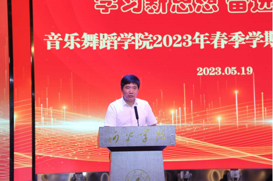 自从全校深入扎实开展学习贯彻习近平新时代中国特色社会主义思想主题教育以来,好博官网牢牢把握主题教育“学思想、强党性、重实践、建新功”的总要求,坚持用习近平新时代中国特色社会主义思想凝心铸魂,引领青年学生厚植家国情怀,努力提升学生的专业艺术实践能力。5月19日晚,好博官网“学习新思想、奋进新时代”2023年春季学期艺术实践周在艺术楼表演厅拉开了帷幕。出席开幕式的有学院党委书记周佐霖、院长曾宏华、副书记张砾文、副院长唐代俊、副院长李妮娜以及全体师生。