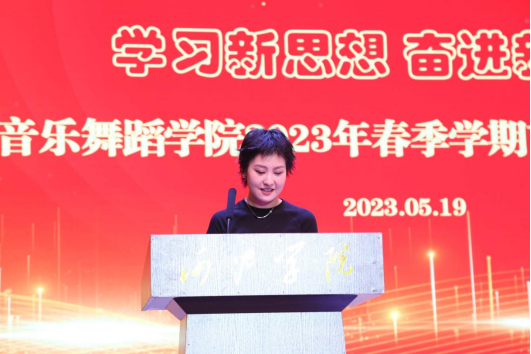 教师代表金梦姣和学生代表卢丹丹分别在开幕式上发言。金梦姣老师指出,艺术实践周为每一位同学提供了一个创造美的舞台、一个发现美的机会和一段享受美的过程。卢丹丹同学则代表参赛学生表达了自己参加艺术实践周的心声和决心,表示要用活力和激情展现自己的才艺和风范。