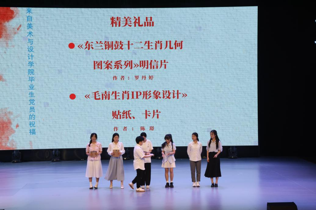 7位优秀毕业生党员分别从专业技能、冠军成长之路、学生干部工作、社会实践、考研考公等方面分享了自己的圆梦经历与体会,用实际行动践行着党员的先进性,用责任与担当为低年级党员同志树立榜样,指明未来前行道路的努力方向。美术与设计学院党委向七位优秀毕业生赠送了精心准备的文创作品作为临别礼物。韦柳寄语毕业生要展现青春作为、彰显青春风采、贡献青春力量,奋力书写为中国式现代化挺膺担当的青春篇章。