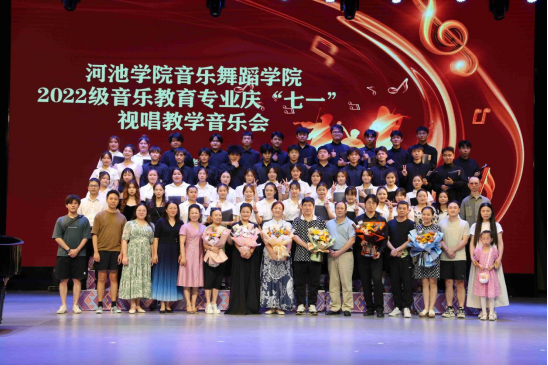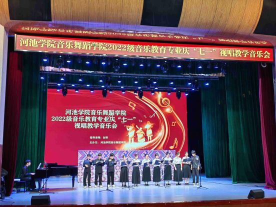 7月1日晚,在全国上下热烈庆祝中国共产党成立102周年之际,好博官网在艺术楼表演厅举行2022级音乐教育专业庆“七一”视唱教学音乐会。学院党委书记周佐霖、院长曾宏华、副院长唐代俊、银龄教师白翎教授及全体师生出席音乐会。