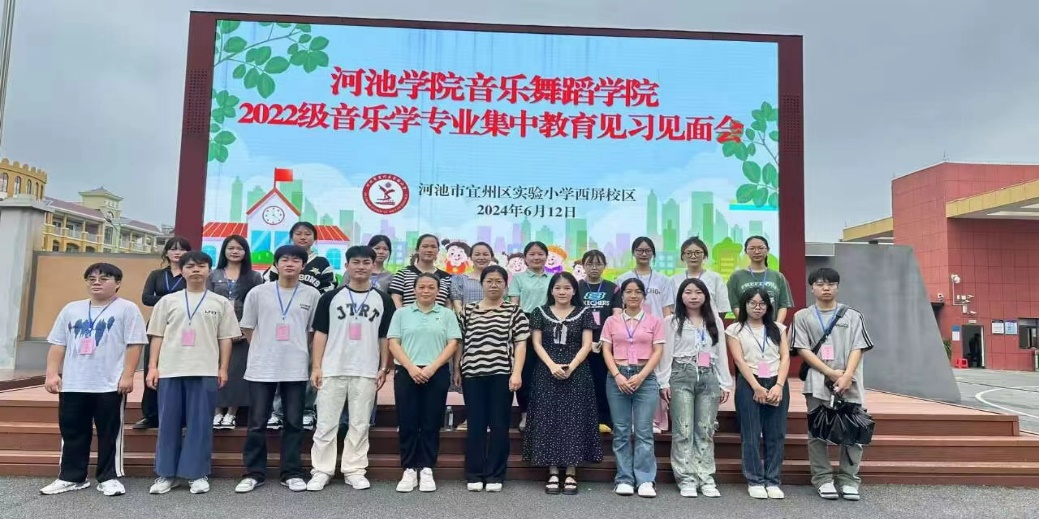6月12日至14日,我院2022级音乐学、音乐教育专业共159名学生在谢姿媚、成妍、韦柳君、高亮、李莹5位老师的带领下,分别前往宜州区实验小学本部和西屏分校、宜州区第一小学、宜州区第二小学、宜州区西屏中学开展了专业见习活动。